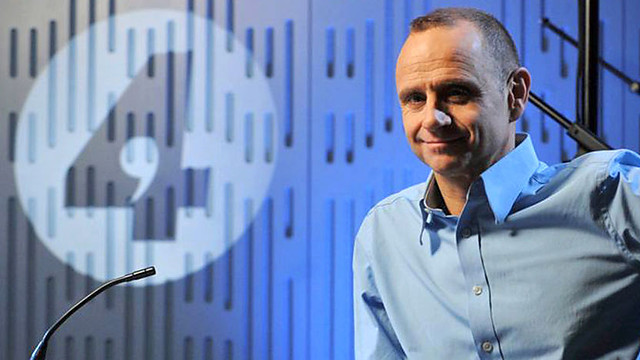 In response to a point from venture capitalist John Moulton, Evan exclaims “God, that’s amazing isn’t it?” I suspect even he’d not be as relaxed as that if it was just on the junior medium of television. He rustles his paper, leans on the desk, runs a hand through his crop, his suit jacket wrapped around his chair.